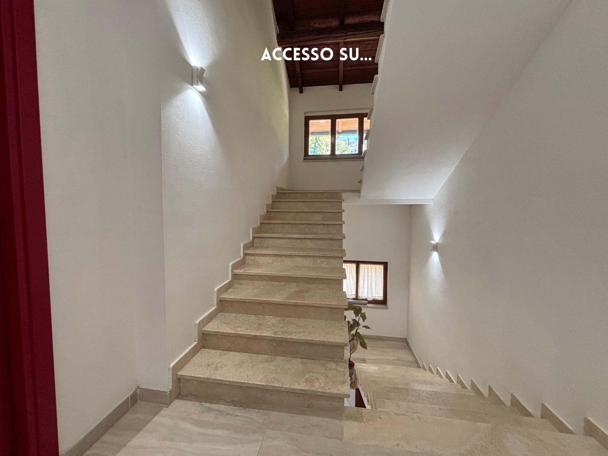 Parliamo di una villa totalmente ristrutturata, accatastata A/7 – abitazione in villino, oltre 350 m² distribuiti su tre piani più mansarda abitabile. Dentro trovi: 9 vani, 6 camere, 3 bagni, 2 cucine e un salone di 50 m² per pranzi della domenica e compleanni senza spostare i tavoli due volte. Due terrazze per l’aria di collina, soffitta/mansarda ampia, due garage (totale 150 m²) collegati all’abitazione, due cancelli elettrici. Il tutto in centro paese, con i servizi a piedi.