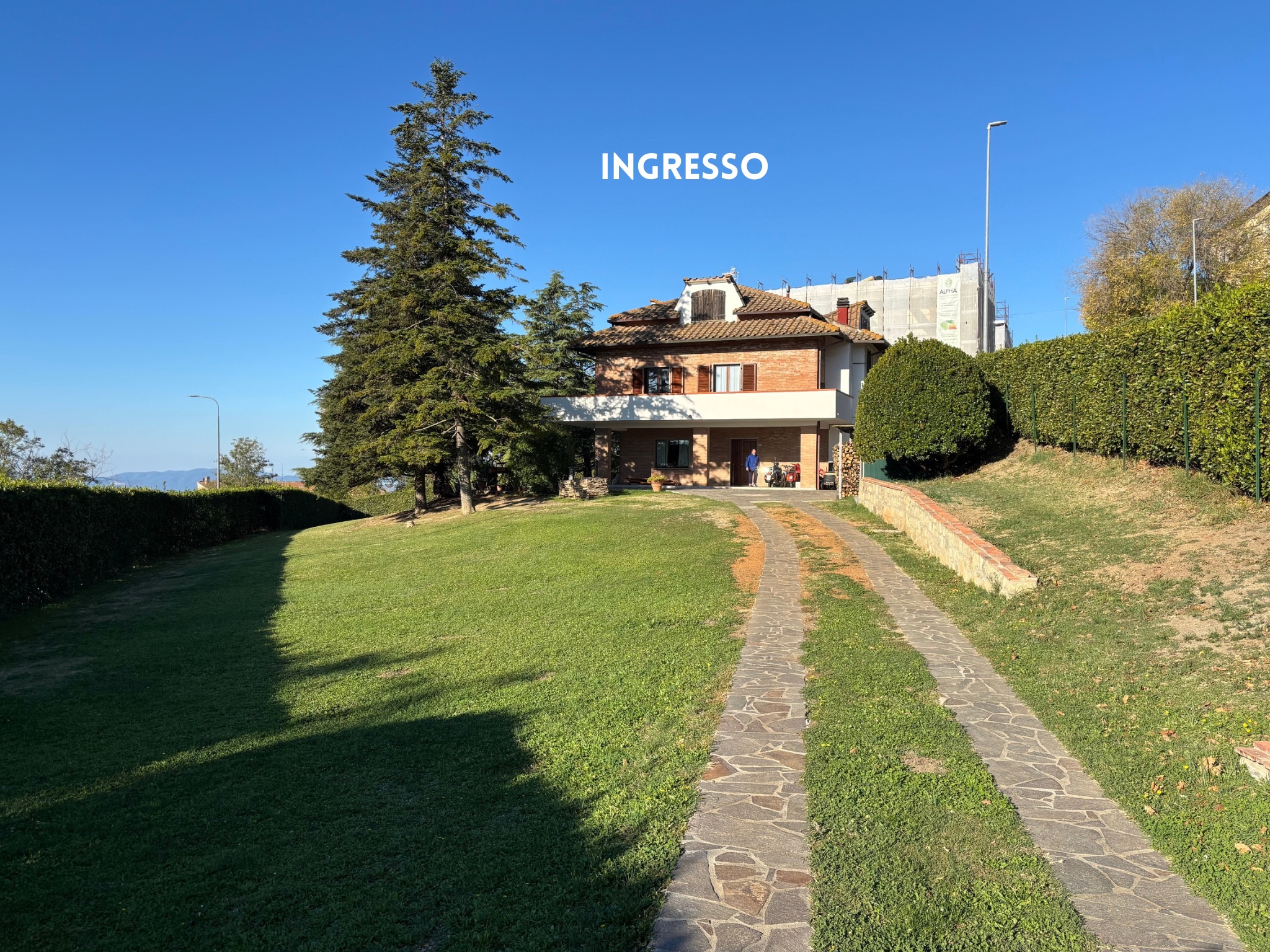 We’re talking about a fully renovated villa, classified A/7 – residential villa, over 350 m² spread across three floors plus a livable attic. Inside: 9 rooms, 6 bedrooms, 3 bathrooms, 2 kitchens, and a 50 m² living room for Sunday lunches and birthdays without having to move the tables twice. Two terraces to enjoy the hillside air, a large attic, two garages (totaling 150 m²) connected to the house, and two electric gates. All this in the town center, with services within walking distance.
